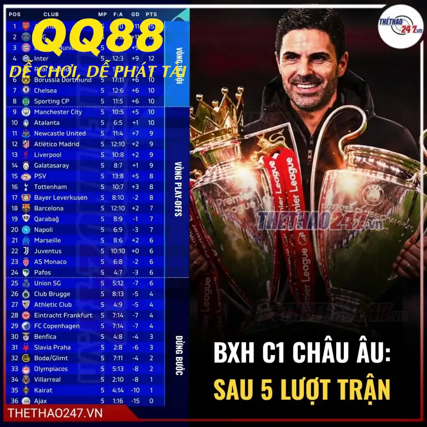 QQ88 GG – Champions League vừa trải qua một đêm thi đấu điên rồ với 42 bàn thắng được ghi chỉ trong chín trận, biến Vòng 5 League Phase 2025/26 thành một trong những vòng đấu bùng nổ nhất lịch sử giải đấu. Anh em bet thủ đêm đó chắc chắn “ấm” rồi!